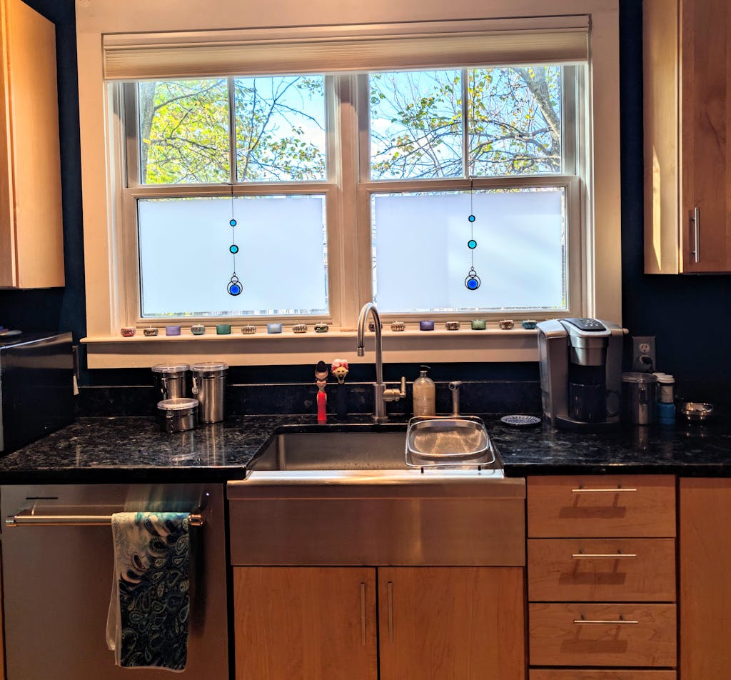 I bought two of these for my kitchen windows and they are so beautiful! The design is elegant and the colors are wonderful. They add so much...rain or shine.
