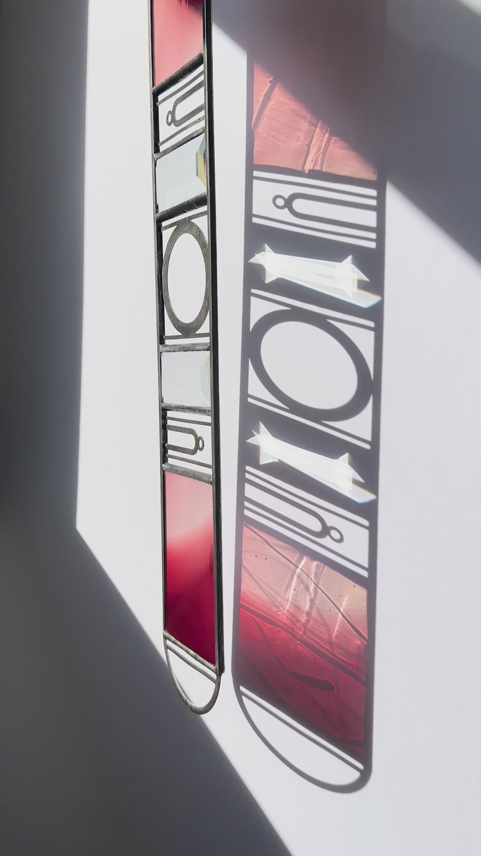 Please note that stained glass will often have small lines and bubbles in the glass that comes from the process of making the glass. These are unavoidable.