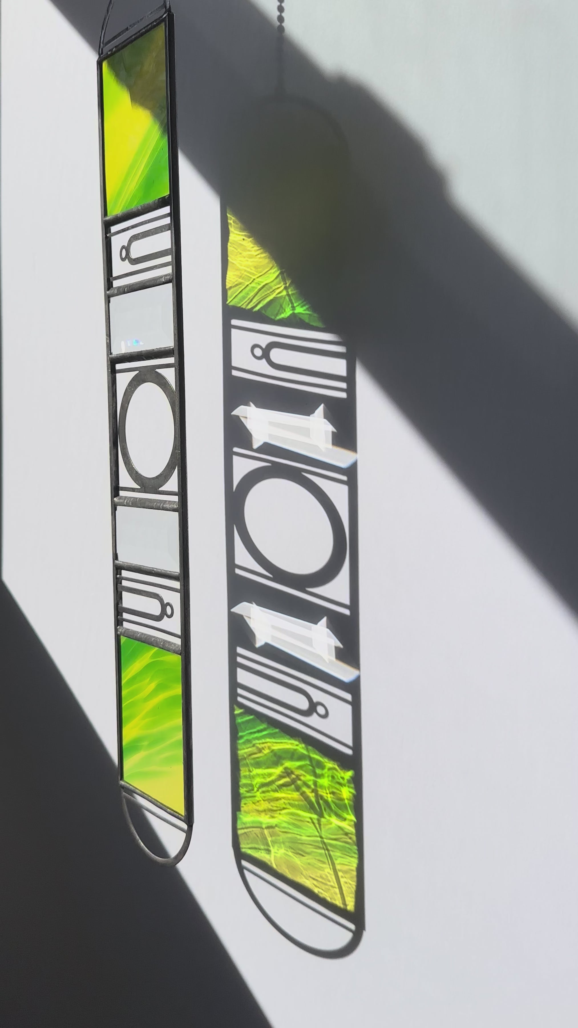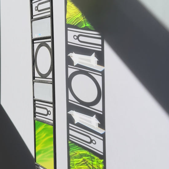 Please note that stained glass will often have small lines and bubbles in the glass that comes from the process of making the glass. These are unavoidable.