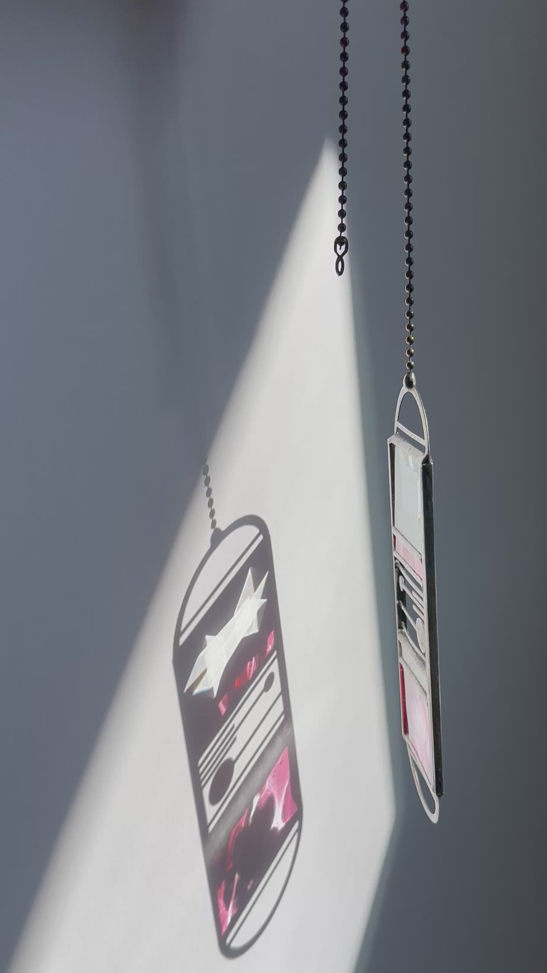 Please note that stained glass will often have small lines and bubbles in the glass that comes from the process of making the glass. These are unavoidable.
