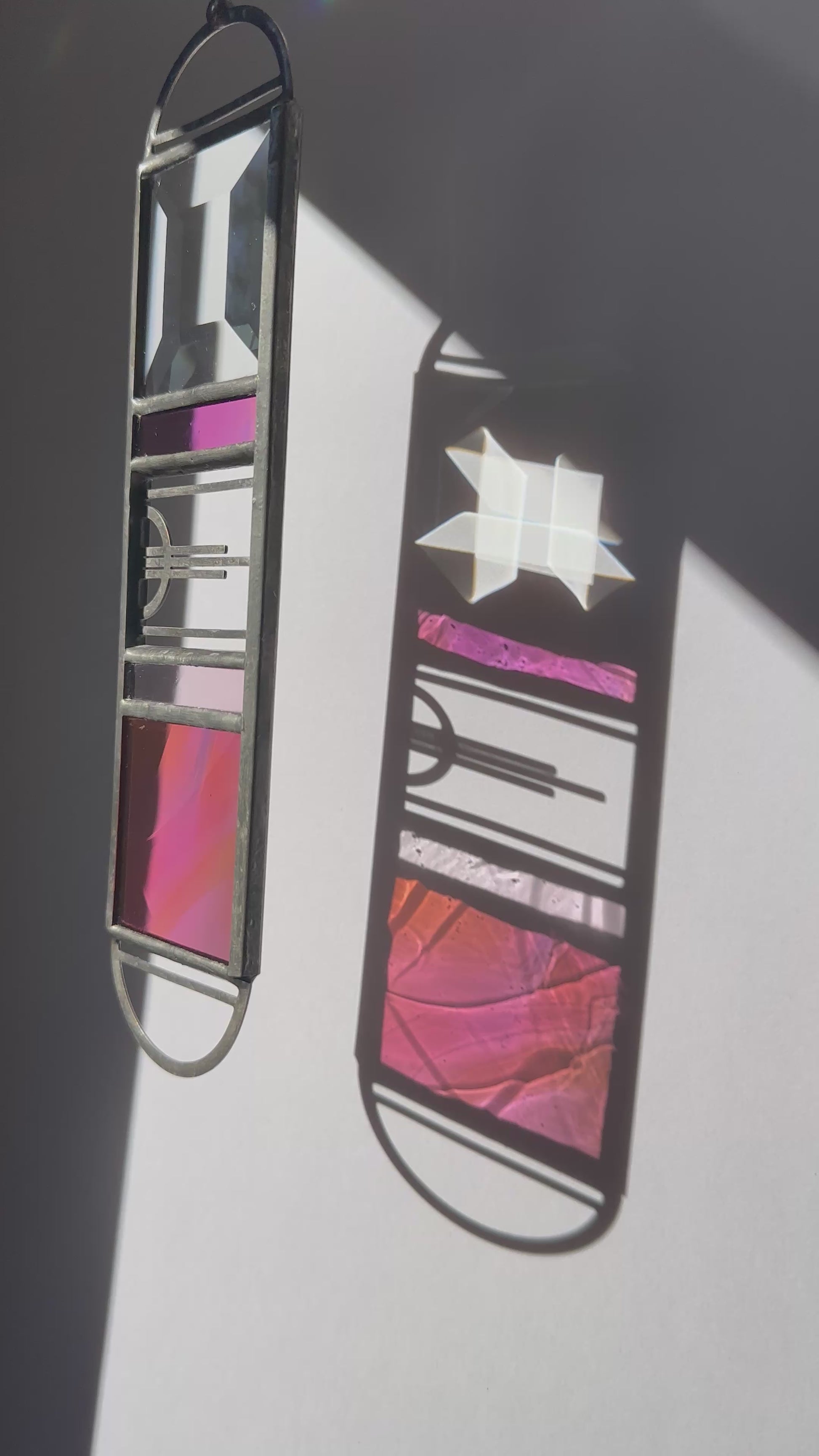 Please note that stained glass will often have small lines and bubbles in the glass that comes from the process of making the glass. These are unavoidable.
