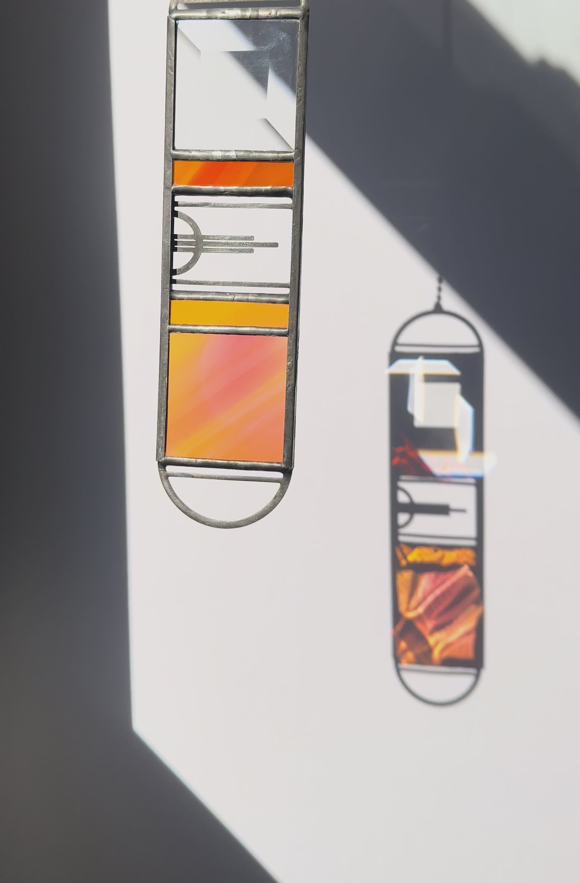 Please note that stained glass will often have small lines and bubbles in the glass that comes from the process of making the glass. These are unavoidable.