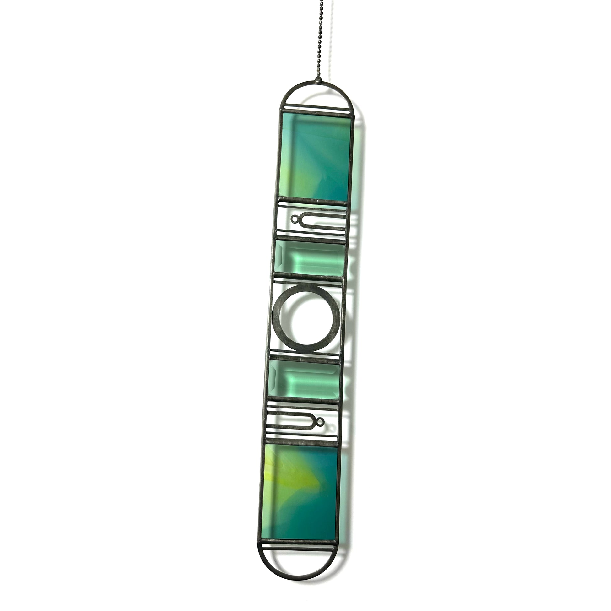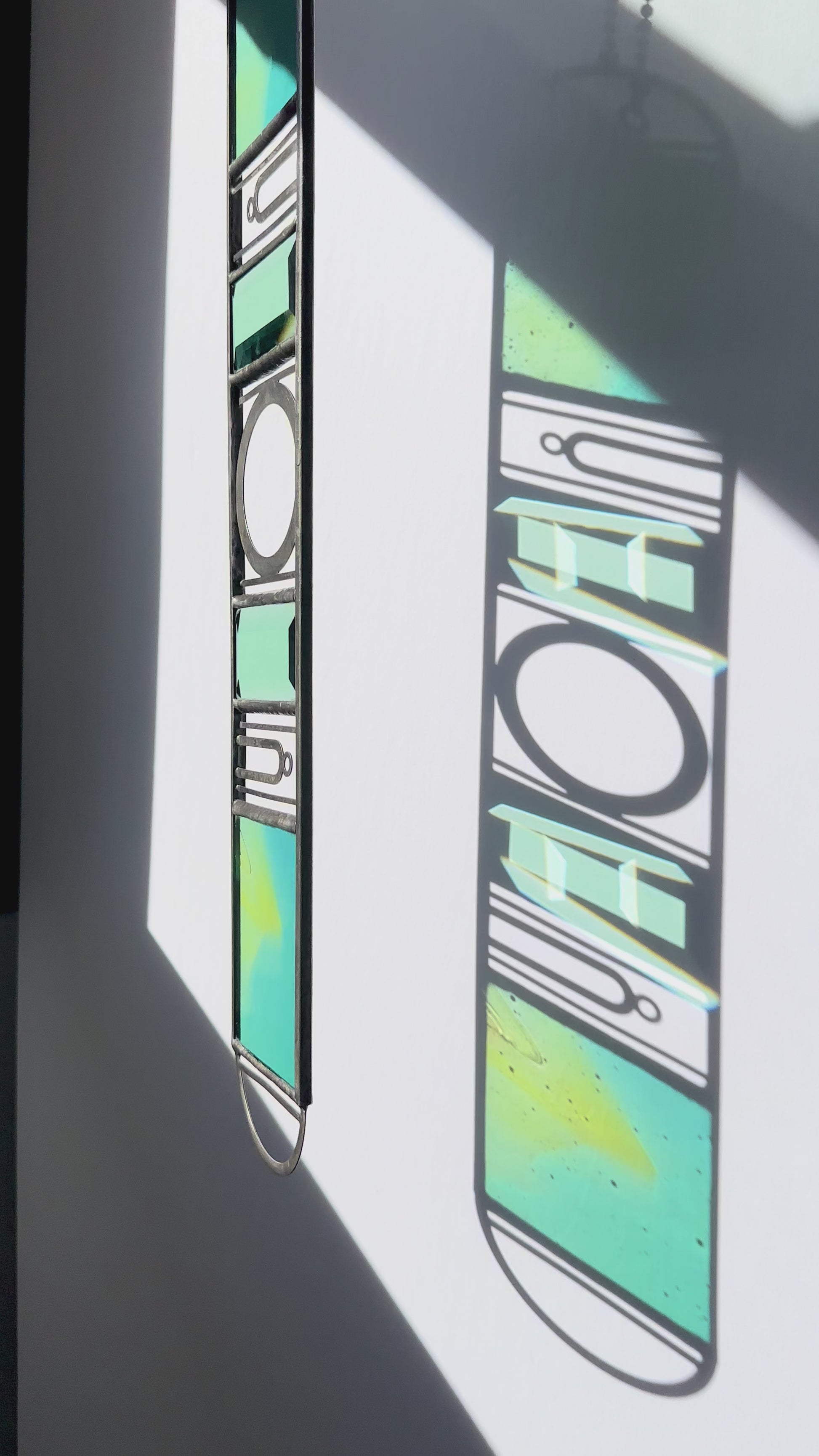 Please note that stained glass will often have small lines and bubbles in the glass that comes from the process of making the glass. These are unavoidable.