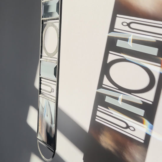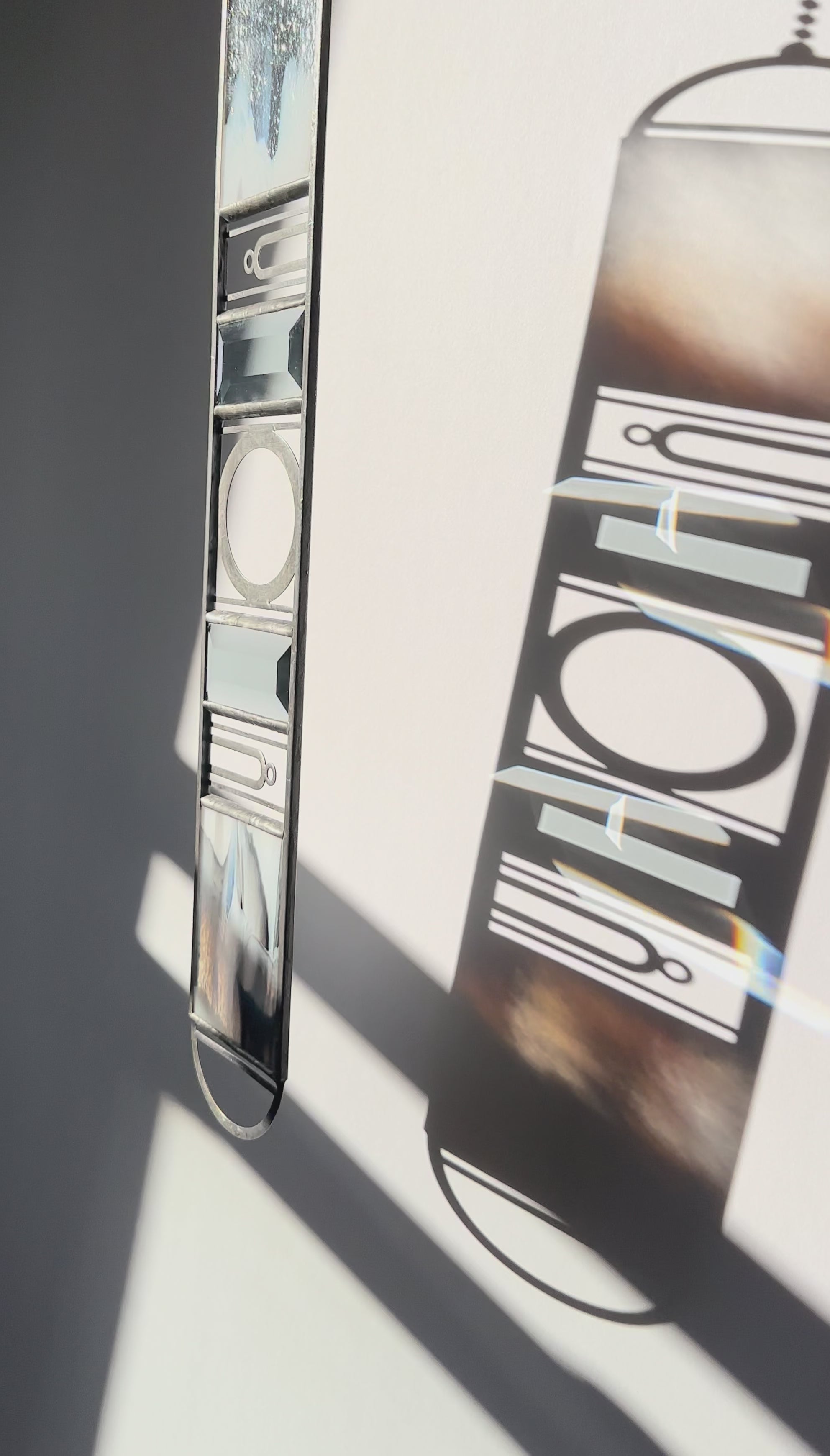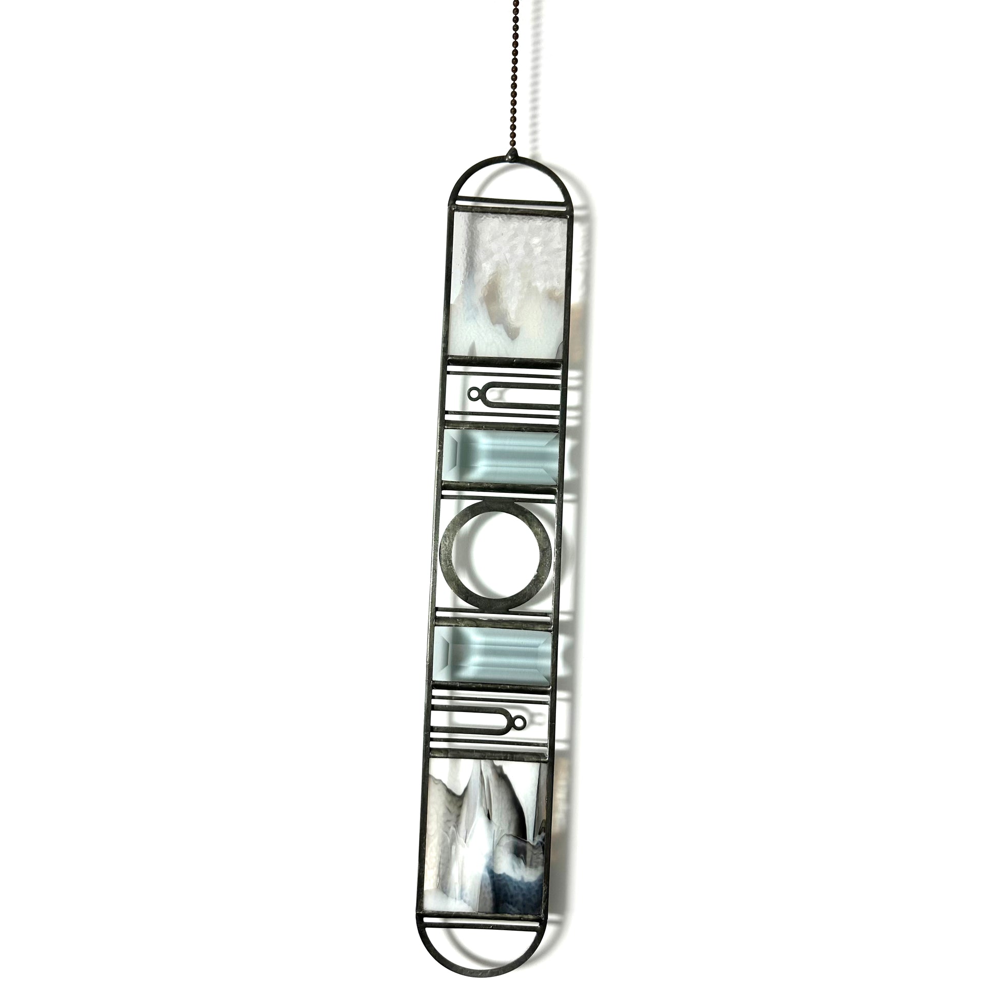 Large Smoke Reflection Suncatcher. Features a handmade panel of smoke and white glass with a unique swirled pattern.