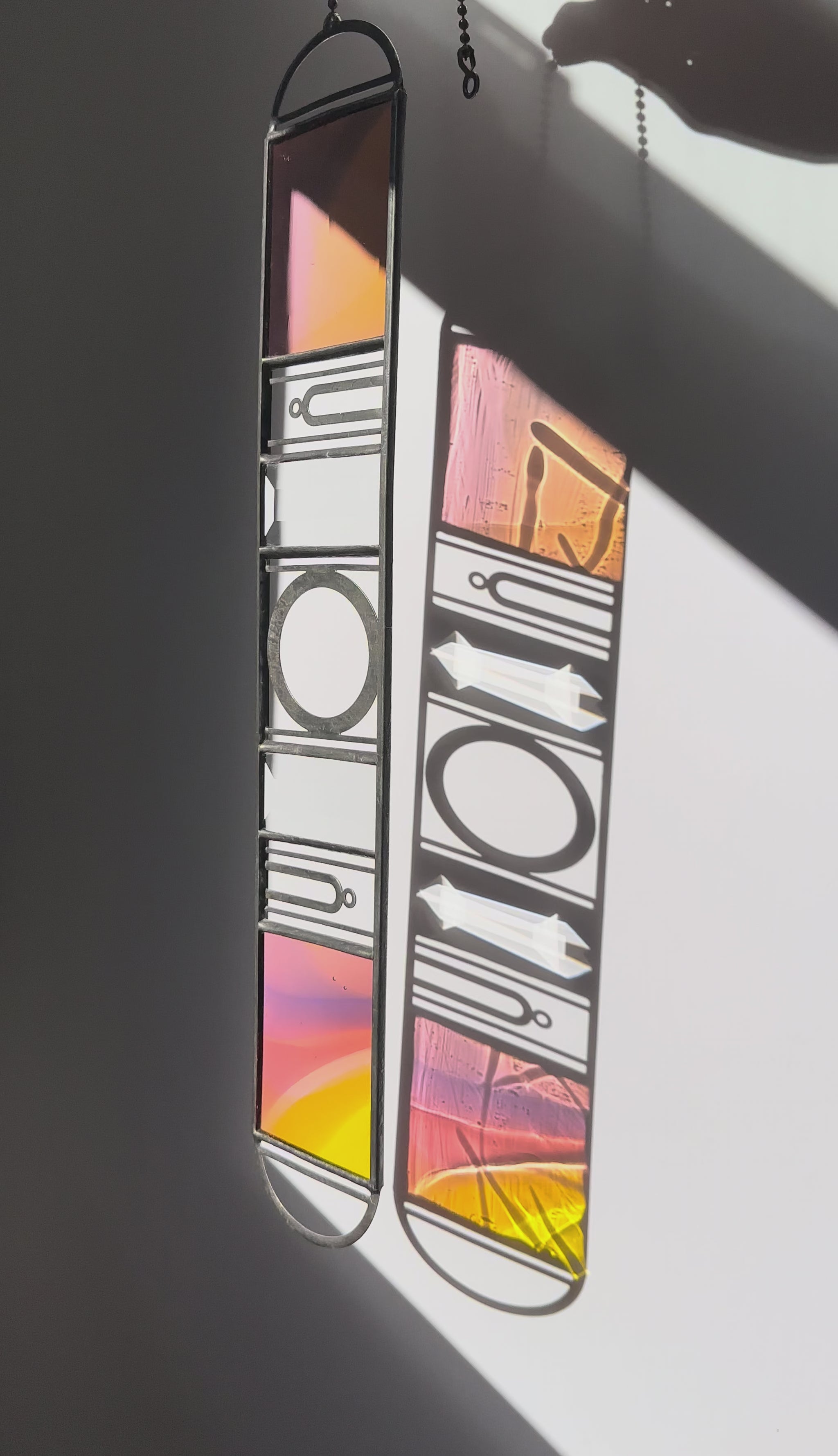 Please note that stained glass will often have small lines and bubbles in the glass that comes from the process of making the glass. These are unavoidable.